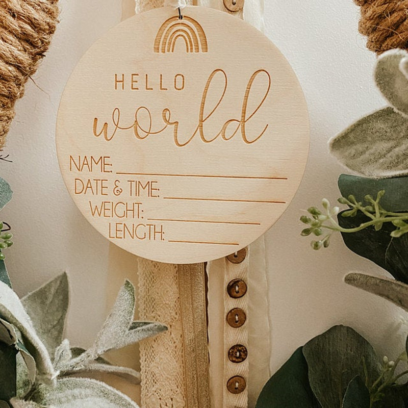 Drevená oznamovacia kartička Hello World je nevyhnutnou fotografickou pomôckou v prvých dňoch života bábätka, pretože novopečená mamička ňou oznamuje príchod svojho dlho očakávaného rodinného člena a tak zachytí tento čarovný okamih a uchová ho navždy.