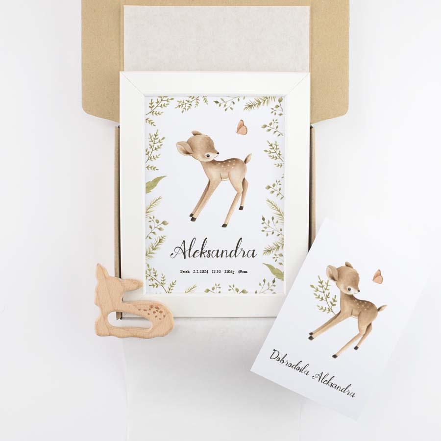 Krásna grafika v modernom boho štýle určite ozdobí každú detskú izbičku a môže byť aj skvelým darčekom pre nových rodičov. Produkt obsahuje grafiku s menom a dátumom narodenia v bielom rámiku formátu A5 bez skla. K grafike môžete pridať aj blahoželanie, aby bol darček pre rodičov a novorodenca kompletný.