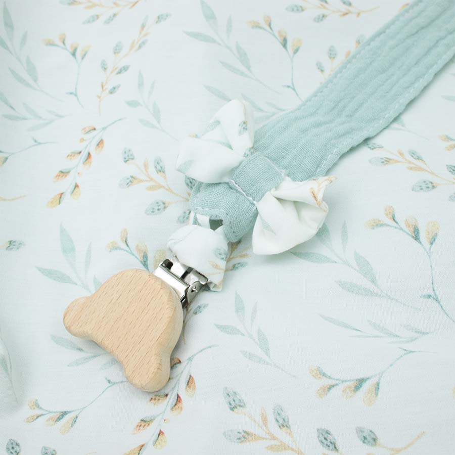 Roztomilý a moderný klips na cumlík určite poteší každého rodiča ako darček. Prívesok so sympatickou mašličkou je ručne vyrobený v Slovinsku z najkvalitnejších materiálov, dvojvrstvového mušelínu a bavlny. Na klips môžete pripevniť cumlík aj hryzadlo – všetko, čo vaše dieťa potrebuje na upokojenie.