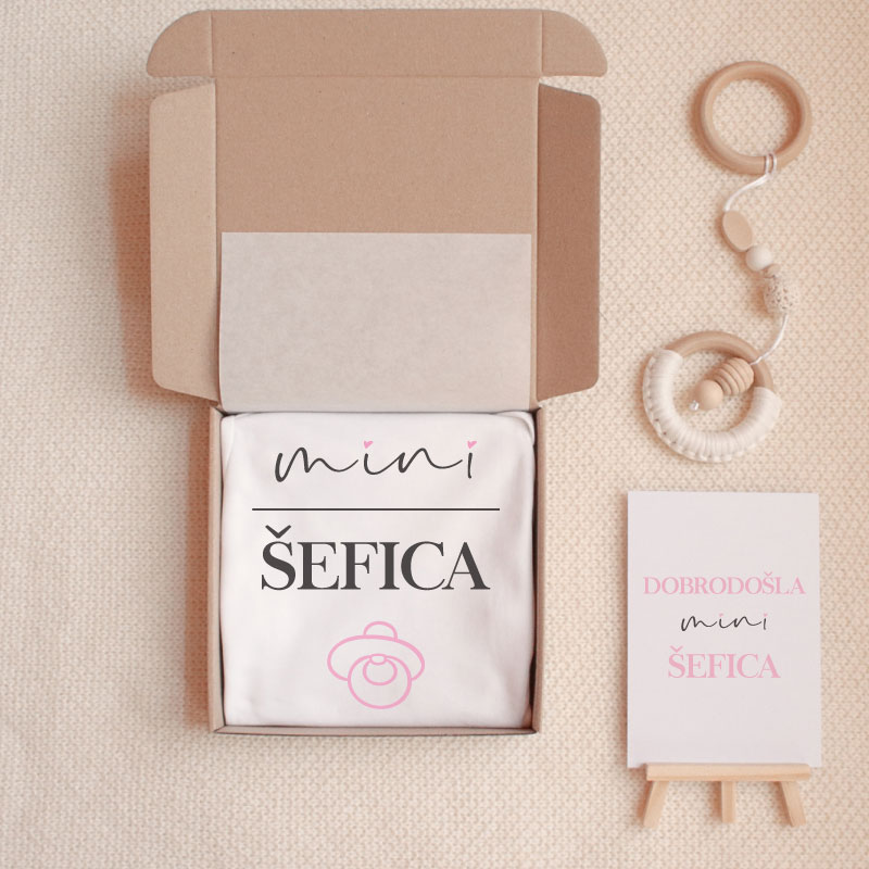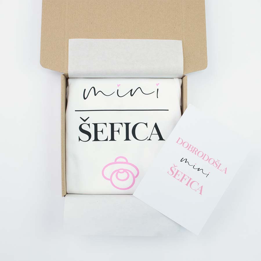 - detské body vo veľkosti 56–62 (0–3 mesiace) s nápisom „Mini boss“