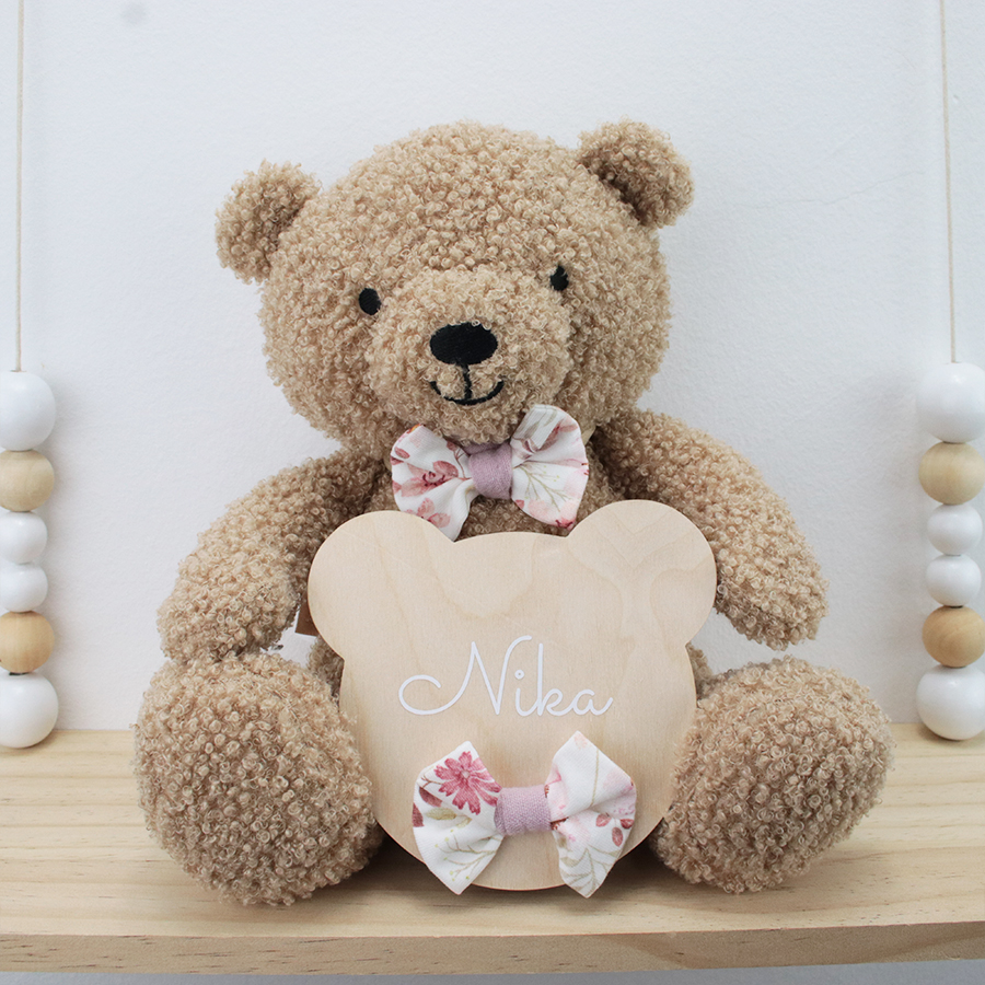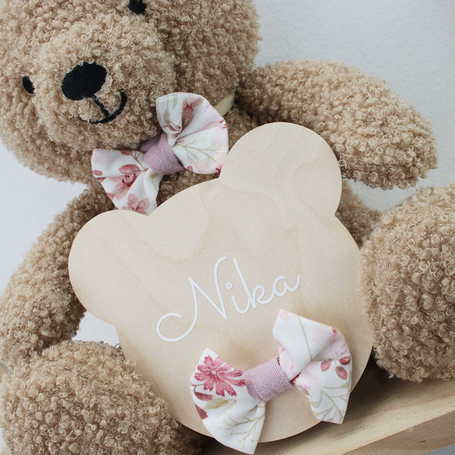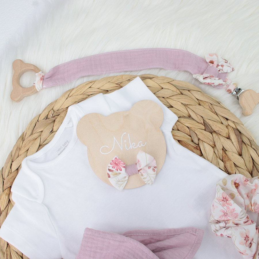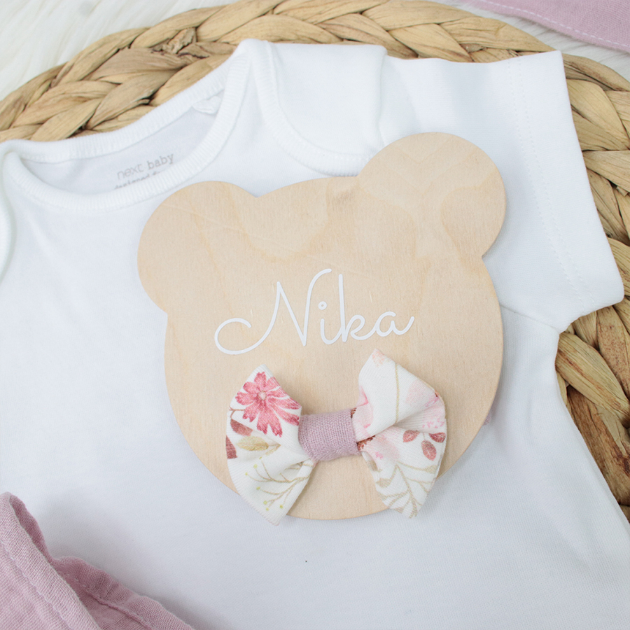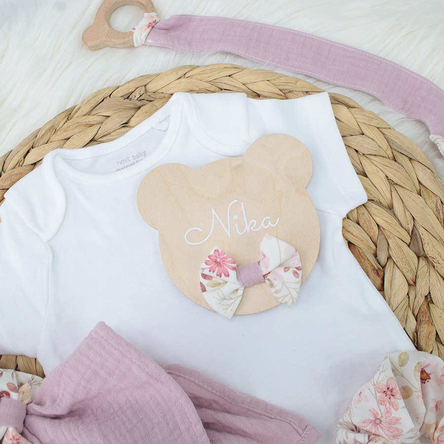 Lesena oznanitvena kartica Medo je nepogrešljiv fotografski pripomoček v prvih dneh malčkovega življenja, saj novopečena mamica z njo naznani prihod svojega težko pričakovanega družinskega člana in tako ovekoveči ta čarobni trenutek in ga shrani za vedno.