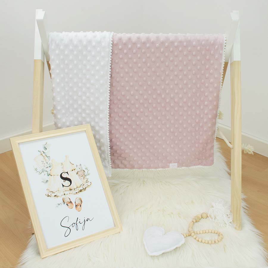 Mäkká a teplá dvojvrstvová deka z materiálu minky je ručne vyrobená v Slovinsku. Deka je nepostrádateľným doplnkom počas chladných zimných mesiacov. Aby bol výrobok ešte osobnejší a cennejší, môžeme naň vyšikovať aj meno novorodenca. Deka môže zahrievať drobca v kočíku, aute alebo v postieľke. Pri objednávke vyšívania si môžete vybrať medzi rôznymi farbami nite, úplne podľa vašich želaní.