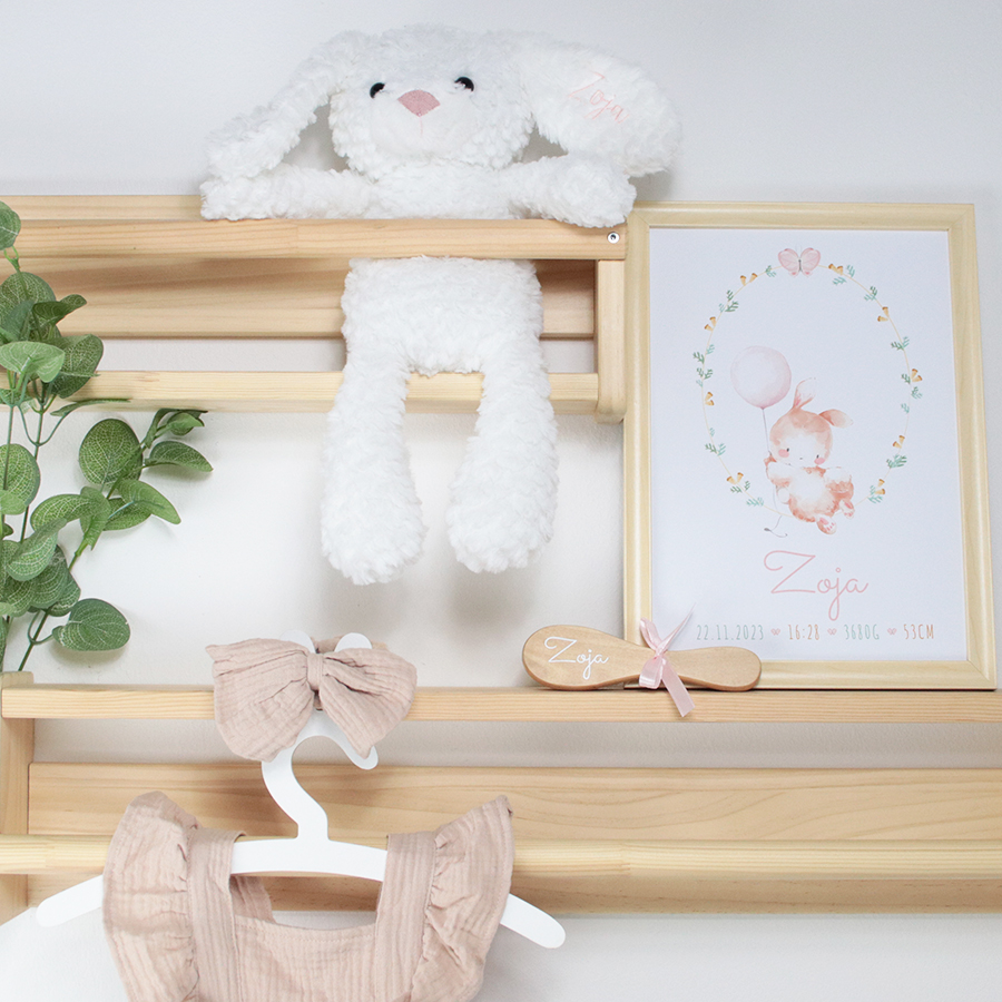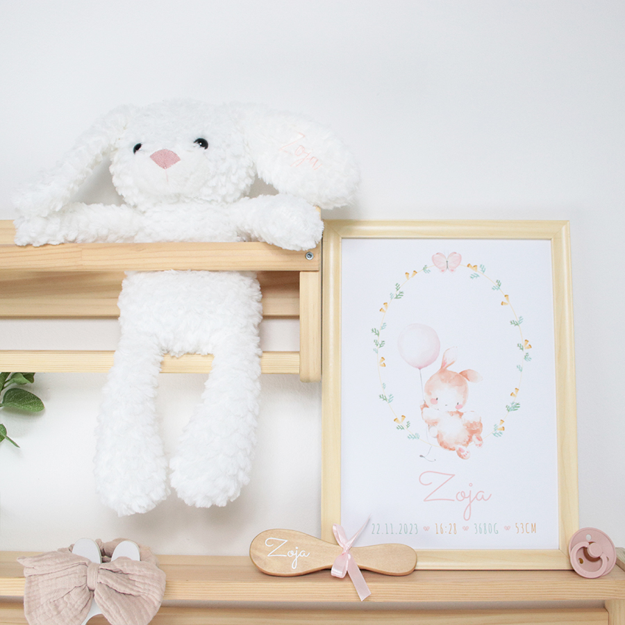 Prekvapte rodičov personalizovaným plyšovým zajačikom, ktorý má na ušku vyšívané meno novorodenca. Zajačik a bábätko sa určite stanú najlepšími priateľmi a budú spolu všade – doma, v aute, v kočíku aj v postieľke.