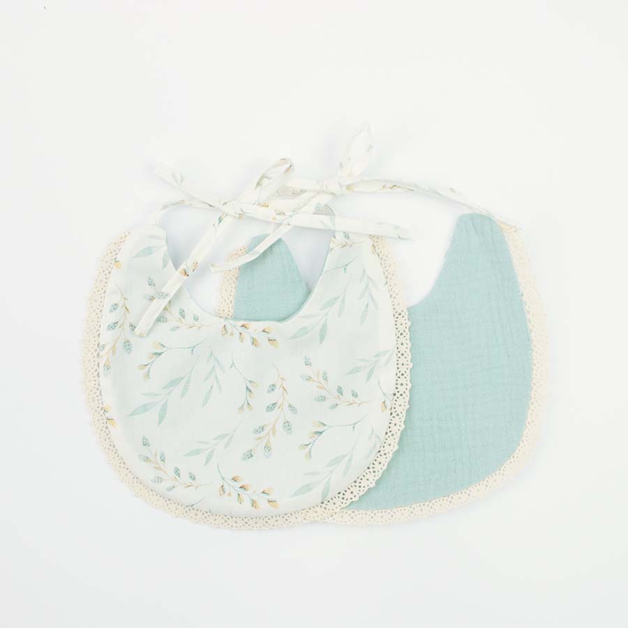 Minimalistická a moderná obojstranná podbradníčka je určite darčekom, ktorý poteší každú mamičku. Podbradníčka je ručne vyrobená v Slovinsku z najkvalitnejších materiálov. Skladá sa z 3 vrstiev – na jednej strane je dvojvrstvový mušelín a na druhej strane bavlna, lemovaná slovinskou paličkovanou čipkou. Podbradníčka bude mimoriadne užitočná v mesiacoch, keď začne drobec objavovať nové chute a ochutnávať nové jedlo.