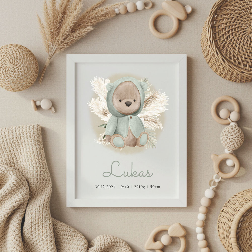 Krásna grafika v modernom boho štýle určite ozdobí každú detskú izbičku a môže byť aj skvelým darčekom pre nových rodičov. Produkt obsahuje grafiku s menom a dátumom narodenia v bielom rámiku formátu A5 bez skla. K grafike môžete pridať aj blahoželanie, aby bol darček pre rodičov a novorodenca kompletný.